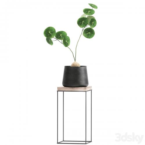 Decorative plants for the street and interior in black pots, a stand for flowers.