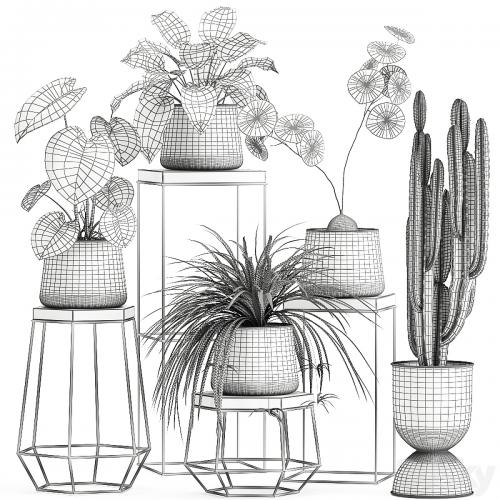 黑 pots 中的 Stefania Erecta ,仙人掌,Philodendron 小植物集合。Set 899。