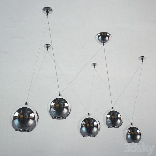 Height 1500 mm max diameter of 120 mm of suspension number of lamps 5 Material reinforcement metal Material metal plafond Lamp power W 4 W Voltage 230 V Area Lighting 12 sq.m. The degree of ingress protection IP20 Type of lamp type LED fixtures surface glossy type surface lampshades sleek chrome fixtures Color Color the ceiling chrome Cap GU10LED Mounting Hook