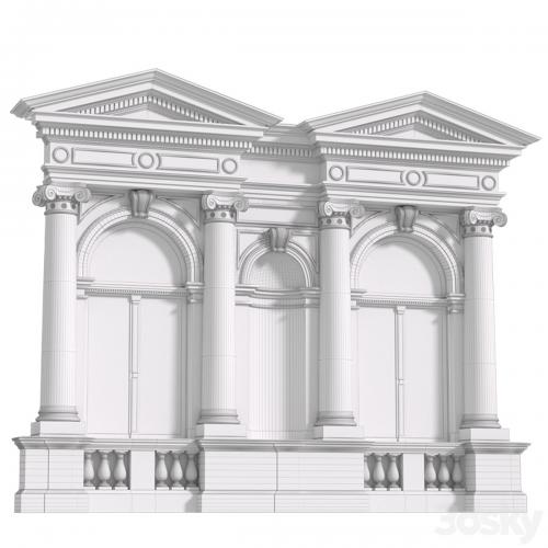 Colonnades can be used in the form of porticos and galleries adjacent to the building, which unite its separate volumes and visually connect it with the surrounding space of the courtyard or square