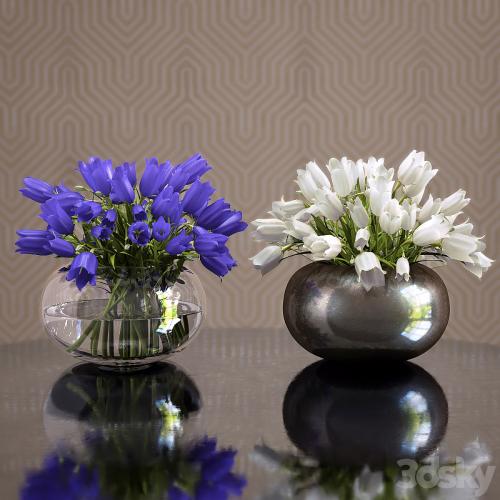 Two bouquets of blue and white bells in different vases. The archive Fbx + Max2011