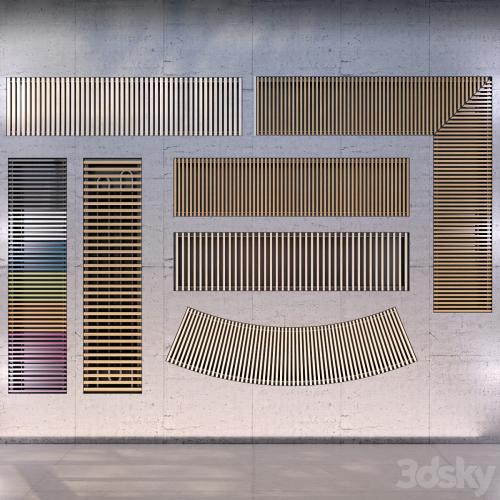 Recessed convectors "Breeze". Length * width * height of the model 1200 * 300 * 100 mm. Produced length from 800 to 5000 mm. Model easy to change. There are angular and radusny module. The radius is not folded stack can change the radius. Grates - wood (beech, oak, birch) and metal - anodized or painted in any color of the palette RAL. Presented with a different grating pitch and profile. The inner part is modeled separately for the near angle can be inserted inside.