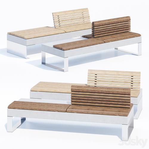 The Diamond bench, in the linear version, 45 ° or 15 ° sector, can be equipped with either flat or back seat, mono or bilateral. The structure features a steel frame on which exotic wood boards are fixed.