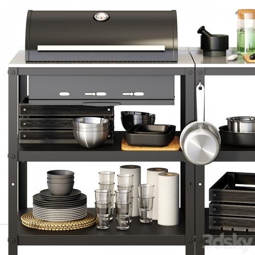 Charcoal grill GRILLSKÄR (GRILLSKER) IKEA with storage modules.