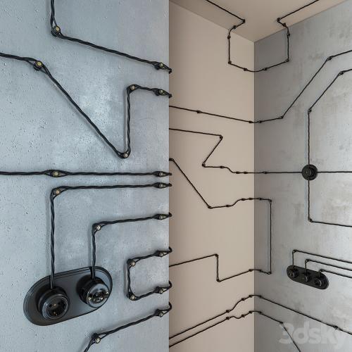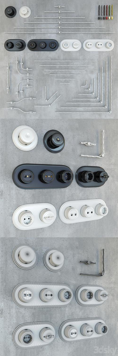 Designer Retro wiring consists of: -troynye wires in tissue sheath (Magnus) -rozetka -rozetka waterproof -vyklyuchatel -raspredelitelnaya box -rozetka R / TV-Sat -rozetka RJ11 + RJ45 -ramki Ceramic Manufacturer sockets and frames Bironi collection Basics Porcelane not stack folded, you can change the degree of bending of the wire and the degree of smoothing. All wiring elements fit together perfectly bound to ensure the best result after joining all the elements to select all of the wires and merge into a single entity Attach command and then select all the vertices of the resulting object and cook them Weld team, in the end, add anti-aliasing. Designer allows you to build the wiring of any complexity for any form of walls and ceilings. Outlets and switches can be combined as you like swapping. The archive is a model for 3dsMax 2012