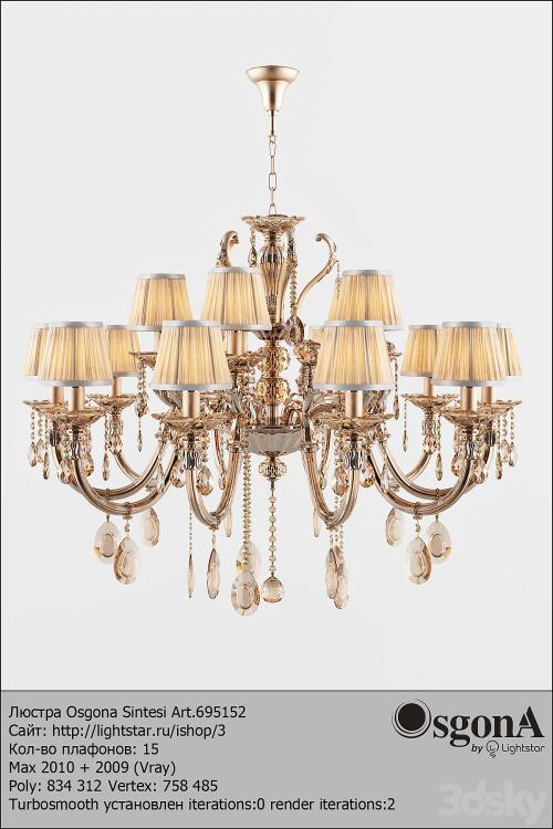 Chandelier Osgona Sintesi Art.695152 http://lightstar.ru/ishop/3 lampshades No. 15 Mach 2010 + 2009 (instead of FBX) + VRay Poly: 834,312 Vertex: 758,485 Turbosmooth set iterations: 0 render iterations: 2 Hi-poly. The material exhibited crystal dispersion, which increases rendering time in a few times if not needed - disconnect. Note from Lightstar: "model comes under the order"