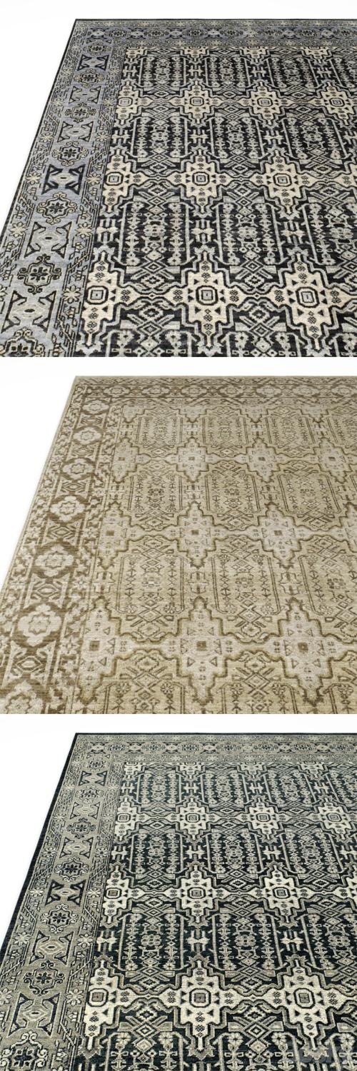A universal neutral palette softens geometric motifs to create a traditional design. The carpet is masterfully tied manually from pure wool. Our carpets are made by artisans, and there are no two identical. Given their manual nature, slight changes in shade and size are inherent in the design.