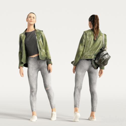 3D scanned woman in 3 color variations. Mesh and UV corrected textures fine tuned in photoshop. Hand painted corrections for proper bumps. Realistic shaders including vray skin shader.