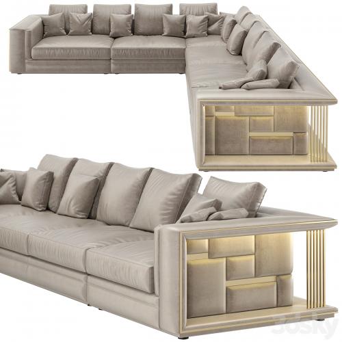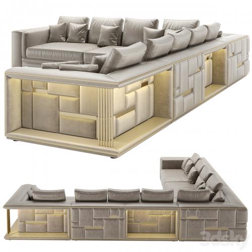 A large modular sofa, all modules are movable, it is easy to change the design of the sofa, remove smoothing and ungroup. Modular options, straight sofa, short corner sofa, two small sofas. The original provides lighting in the niches. Two material options, texture, fabric, leather.