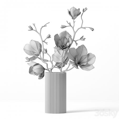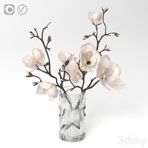 Bouquet of white magnolia in a vase. On the preview of Corona