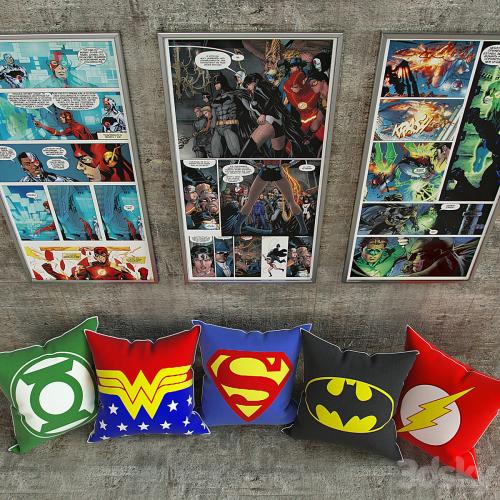 3dmax 2014 + fbx Pillows Super Heroes DC COMICS: - Batman - Flash - Green lantern - Superman - Wonder Woman patterns Dimensions: 50 x 50 is also present in the archive posters Corona Render Materials