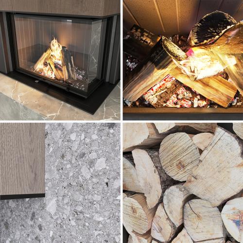 3 sizes of Romotop IMPRESSION fireplaces, firewood (high quality textures, resolution 7000x7000 pixels)