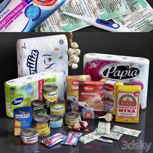 toilet paper, garlic, antibacterial wipes, paracetamol, tablets, medicines, thermometer, thermometer, flour, buckwheat, buckwheat porridge, millet, canned food, beans, peas, corn, fish, pink salmon, tuna, rice, Familia, Zewa, Papia, Bonduelle , Heinz.