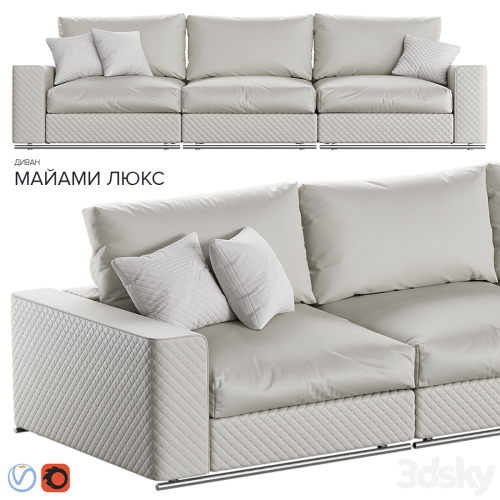 The Miami sofa is made of high quality modern hypoallergenic materials that have been certified for compliance with international safety and environmental standards. The pillow filler does not lose its elasticity even after many years of constant use, while maintaining excellent ergonomics. The upholstery of the Miami Lux sofa is made of durable Italian-made textile material that is easy to clean and does not lose its original presentability for many years.