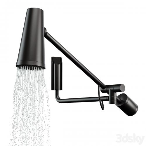 - Wall mounted shower with two-element articulated holder, with counterweight and swivel shower head mount