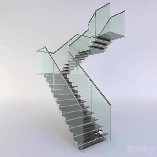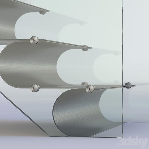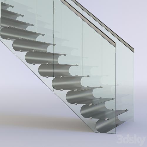 Modern staircase. Concept. Glass railing, metal stairs and railings. Polys: 44,822 Verts: 49630