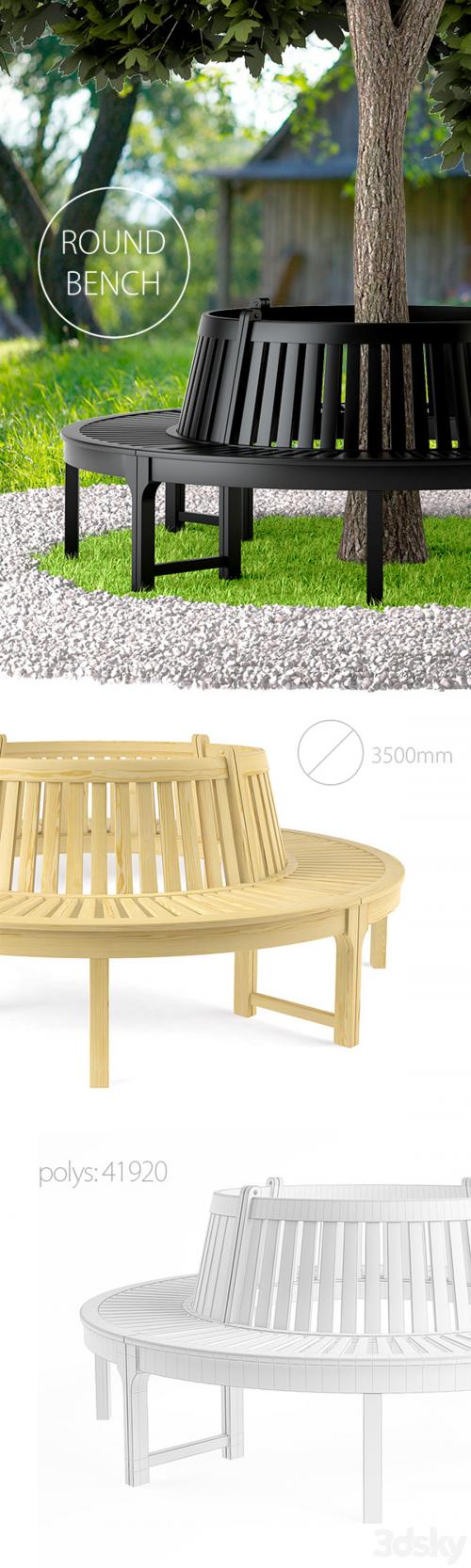 Gardening round bench encircling the tree. Diameter 3500mm The archive is FBX, materials and textures. Scan Unwrap UVW configured. Polys: 43,864 Verts: 47,028