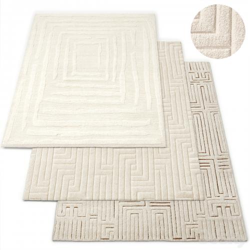 Sheared lines trace a modern maze across Haleh's luxe pile. Hand knotted of pure wool spun with lustrous yarns, the geometric motif is defined by high-low dimension and nuanced shading.