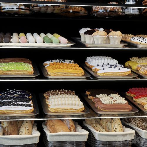 Refrigerated showcase with confectionery for a cafe, restaurant or shop.