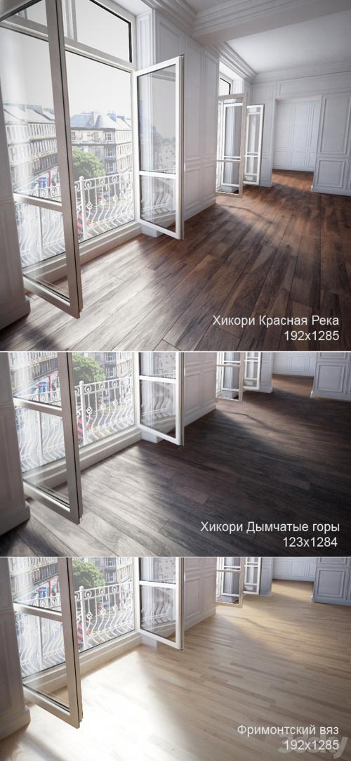 Textures and materials of three types of flooring. Created using MultiTexture + FloorGenerator. Download this free plug-ins you can here: http://www.cg-source.com/ under Plugins / Tools Archive contains high quality wood textures, the resolution of one board more than 2000 pixels. The archive, in addition to themselves textures, as well lie .max2014 file with the finished floor 4x4 meters and materials to it .mat boards Size: 192x1285 Frimontsky Elm Hickory Hickory Smoky Mountains 123x1284 192x1285 Red Rive