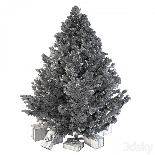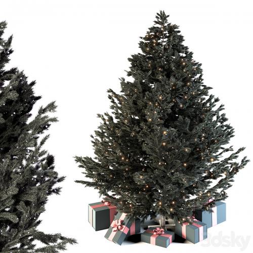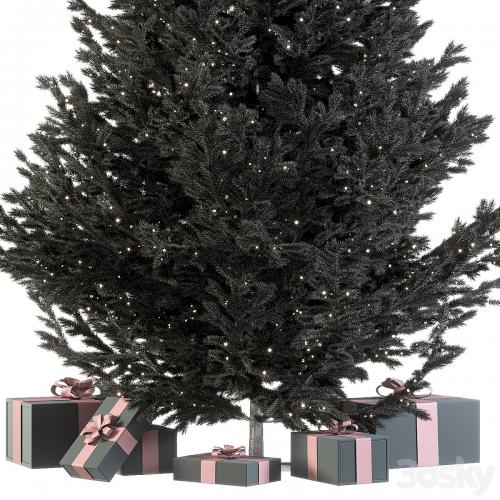 Dark christmas tree with boxes and garland