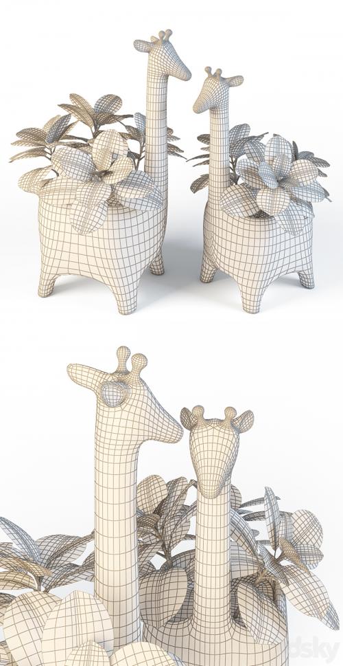 Houseplant Fitton in decorative pots in the form of cute giraffes. The composition will perfectly fit into any space, and decorate your interiors. In the scene 26,610 polygons.
