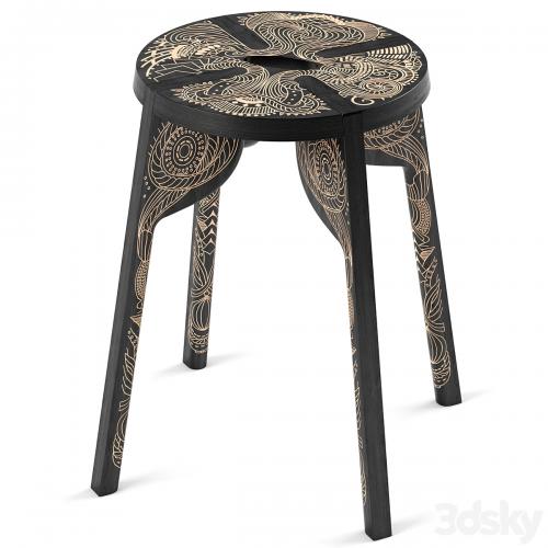 The Tattoo Fullbody stool is adorned with intricate carvings using traditional Bosnian techniques throughout.