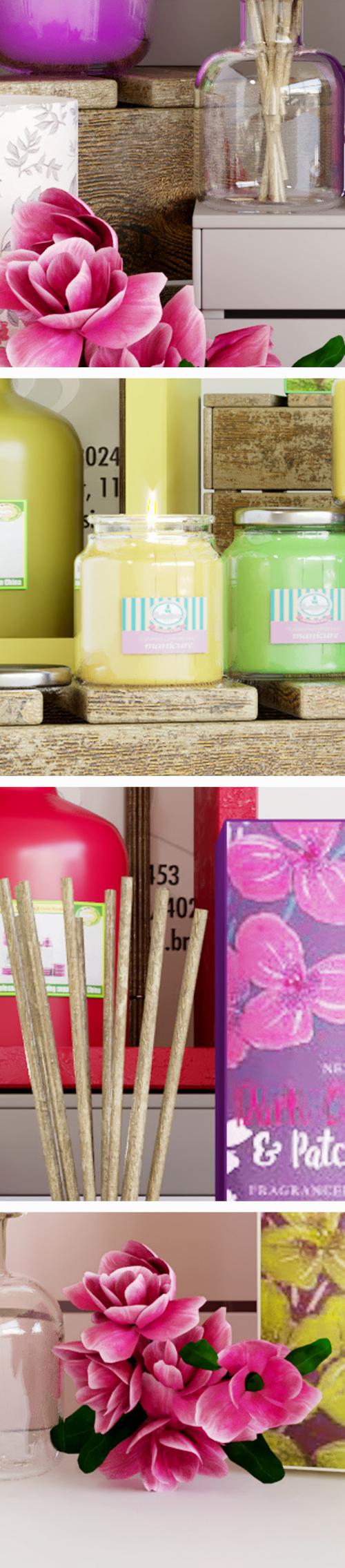 A set of fragrances for the apartment. Aroma stick, perfume, eau de toilette, candle, candlestick, flower, collection set