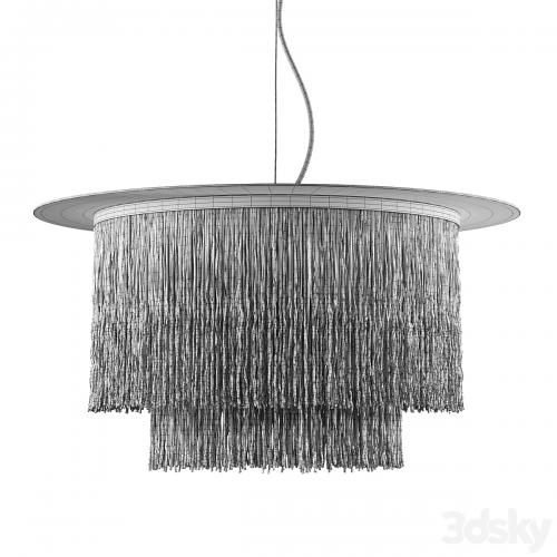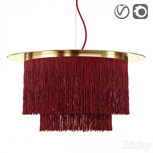 Contemporary light fixture consisting of a brass top bowl and a double row of fringes. This luminaire diffuses soft and pleasant light into the living room or dining room.