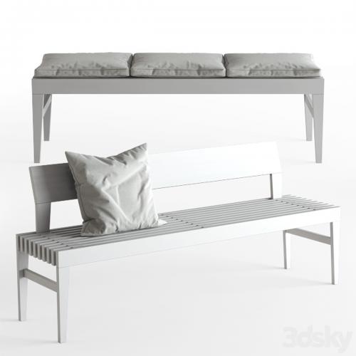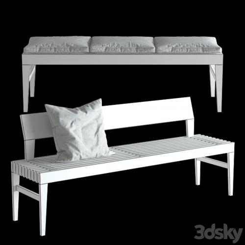Listone bench Height: 45 cm Width: 150 cm Length: 44 cm Polycount: 15,738 Listone bench with back Height: 78 cm Width: 180 cm Length: 47 cm Polycount: 16 104 Pillow Polycount: 20 331/81 266 Cussions Polycount: 35 133/140 440 Finishes: Bench in solid canaletta walnut, white painted wood.