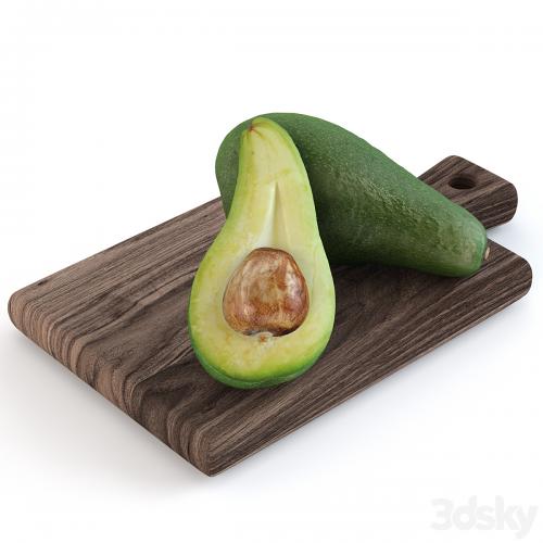 Avocado model in a wooden bowl and on a cutting board. The model is perfect in the kitchen or as a decor on a coffee table in the living room.
