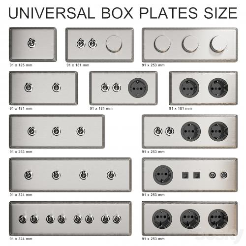 plates: gold, anthracite, graphite, antique bronze, satin nickel (The scene contains a performance only in satin nickel)