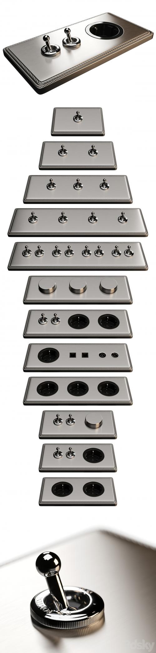 Fontini 1950 is an exclusive collection of sockets and switches, made to the sixtieth anniversary of the foundation of the company. A series of wiring devices is made in a classic elegant style and is designed for unique design interiors. Fontini 1950 is made of high quality metal, it features impeccable finish and a strict style. Products are only available on request on an exclusive basis and limited series.