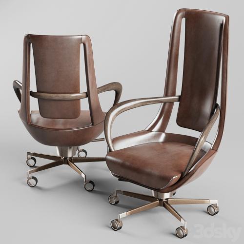 Designed by M2Atelier for Giorgetti, it can be used in walnut canaletto wood. The padding is in expanded polyurethane. Gas spring for height regulation and tilt mechanism. Bronze color with natural effect. The upholstery, not removable, is available in saddle leather or leather.