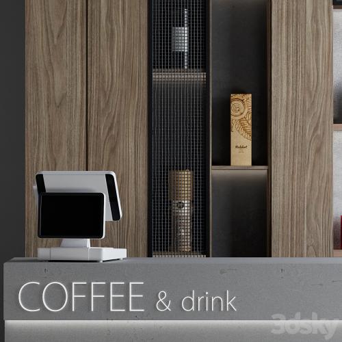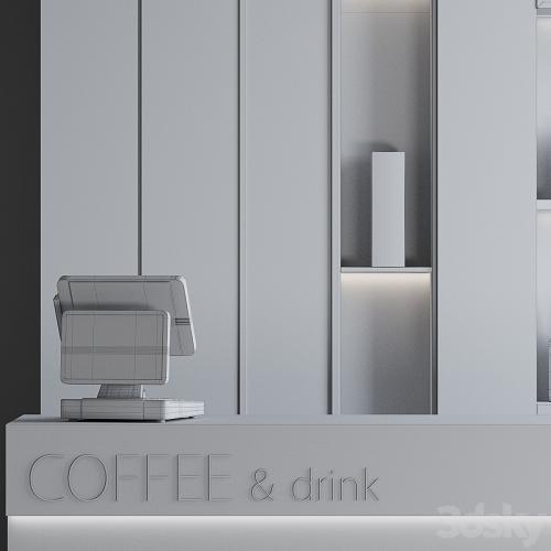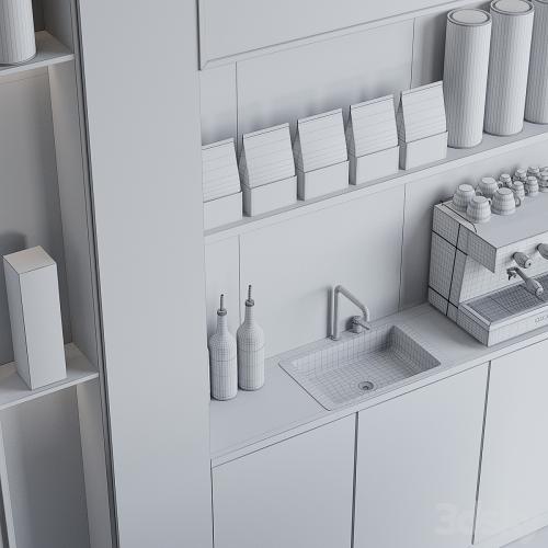The model includes: bar wall geometry, sink, bar counter, Ascaso coffee machine, cash register and matching decor.