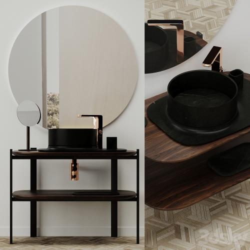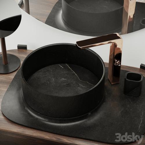 Sink with a hidden sink of dark marble, the cabinet for this model is made of solid walnut.