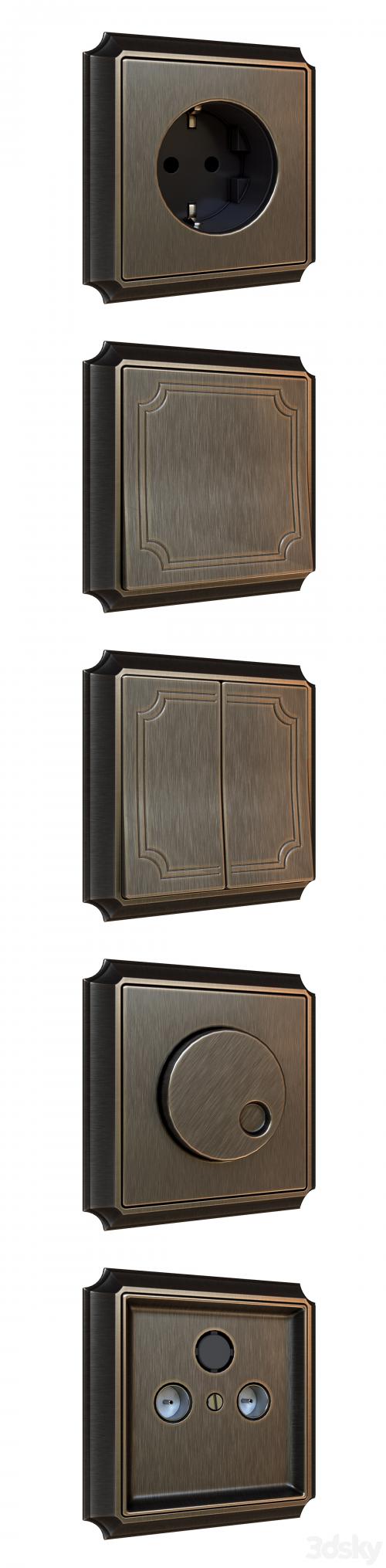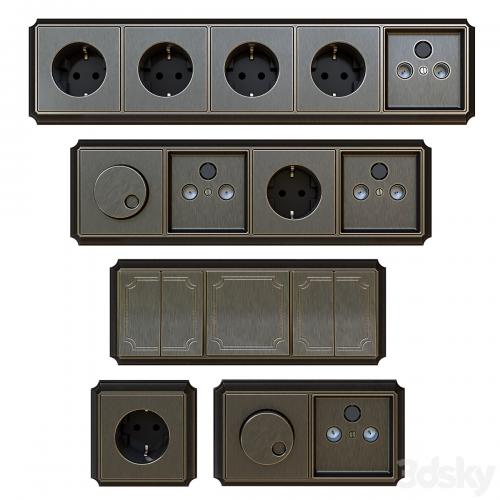 A set of frames and filling in the classic style of the series Merten Antique from Schneider Electric