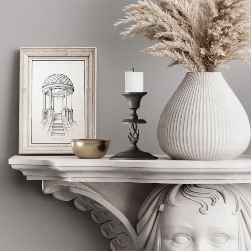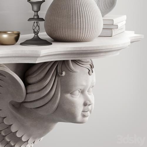 Decorative set on a shelf with stucco molding