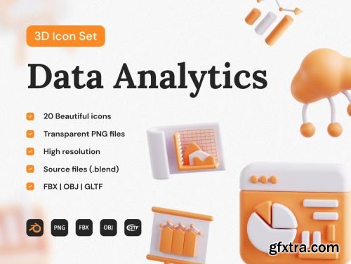 Data Analytics 3D Icon Set Ui8.net