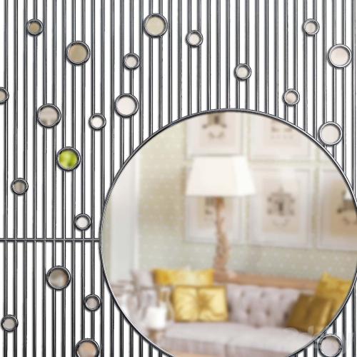 wall mirror, metal, circle, square, wall partition, screen, silver