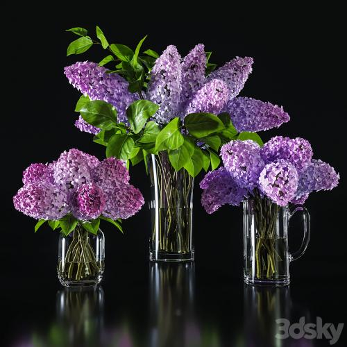 flower, vase, glass, cut, lilac, leaf, decor, decoration, set, white, blue, pink, green,