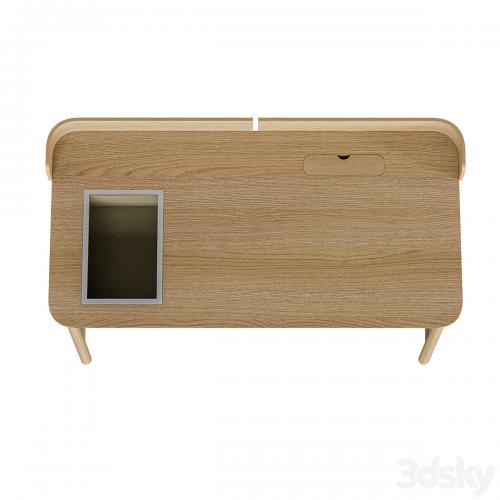 Cable storage compartment with cover to hide cables lying on the table and provide free space for working.