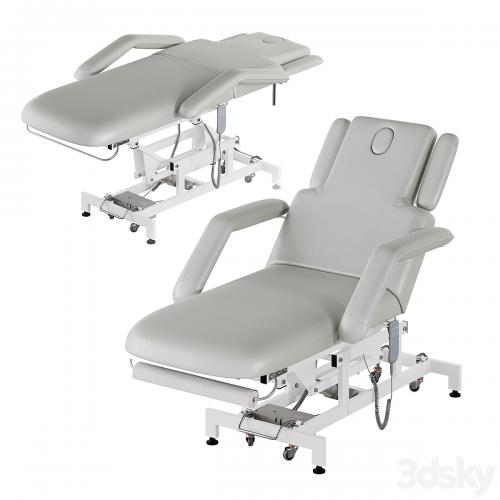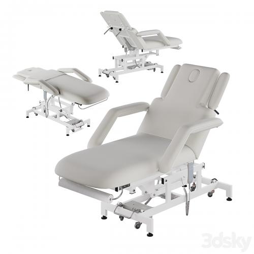 Characteristics: soft elements upholstered in eco-leather, 2 types of metal bases in raised and lowered positions, a headrest with a hole for the face, 2 types of armrests, 2 types of pillows, a control panel for 3 and 4 motor mechanisms.