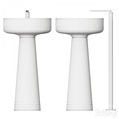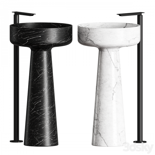 Washbasin in white Carrara marble, gray Carnik marble, black Marquinia or white Cristalplant® bio-based, with cylindrical sink and pedestal, no tap hole and no overflow, mounting kit included. Available in wall or freestanding version. - the mounted version is equipped with a rear groove for water connection. The washbasin can also be supplied in stone or marble upon request, the price to be calculated.