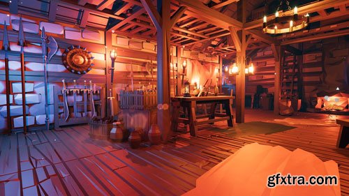 The asset Kit for Fantasy Low Poly Medieval Interior and Constructions.