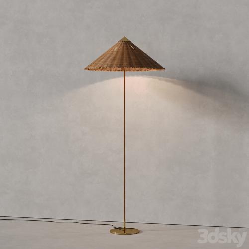 Description: floor lamp / floor lamp, metal, rattan, fabric. Color: white, brass.