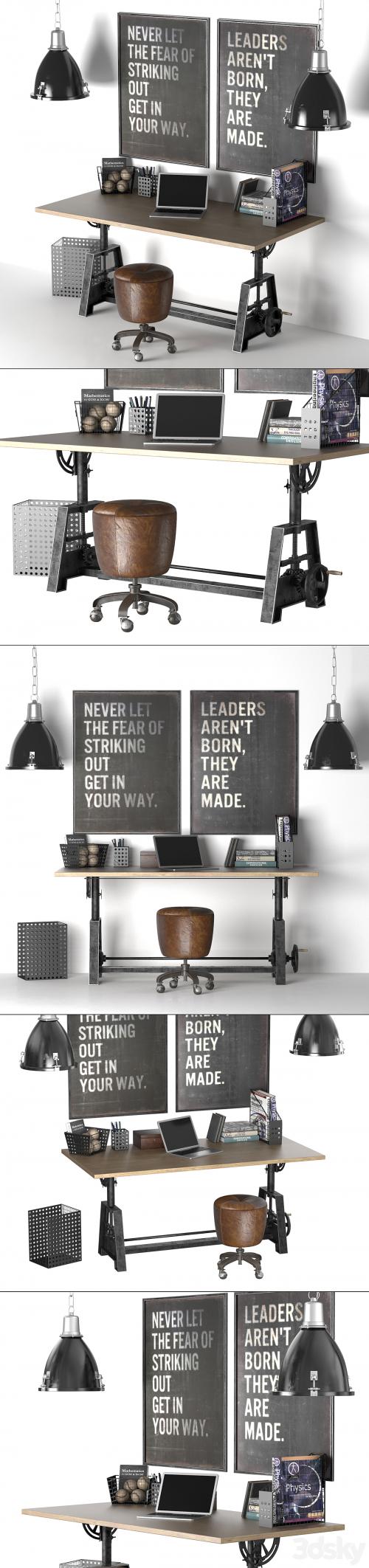 Restoration Hardware RH loft vintage vintage industrial industrial steel steel iron iron metal metal old aged working table chair leather rust scratches