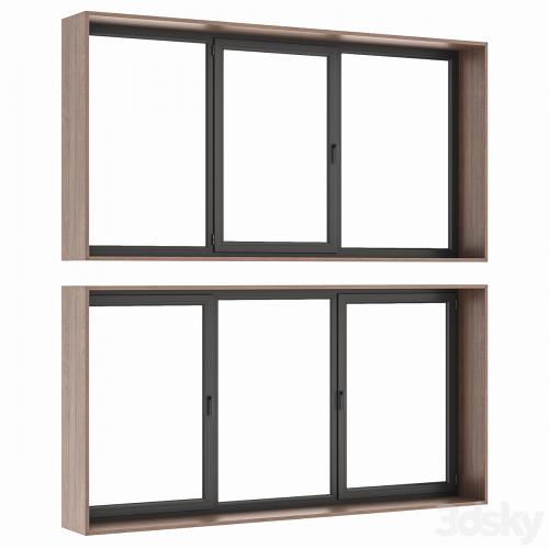 Set of modern windows of different shapes. Models are easily edited to the desired size. Two additional wood frame colors.