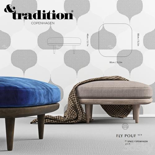 fly pouf andtradition Dimensions (cm / in) H: 40cm / 15.7in, D: 80cm / 31.5in, L: 80cm / 31.5in. Seating height: 40cm / 15.7in. 2015, 2012max, obj