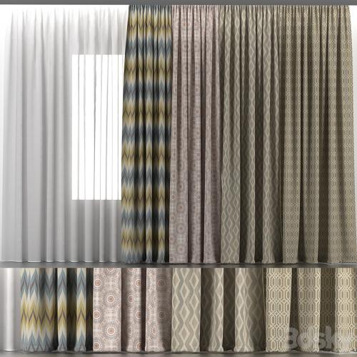 4 curtains of different widths and colors and tulle